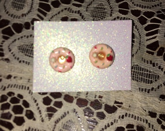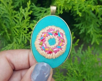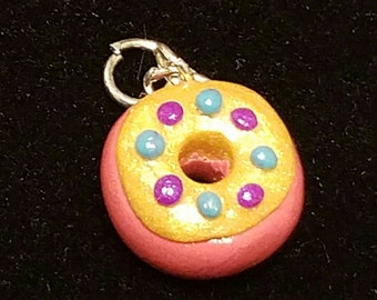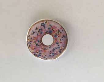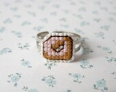 Needlecraft Jewelry Ring pink donut food ring cross stitch jewelery brown adjustable fsb crazyadsteam TT team doughnut avidteam