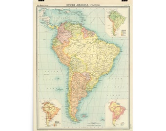 See moreSouth America map - Old map of South America - Archival print