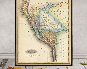 South America map - Old map of South America - Archival print