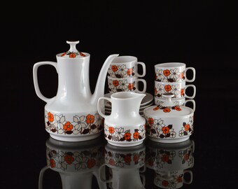 Vintage Ceramic Tea Coffee Serving Set Orange Retro Floral Flowers Brinn's Japan