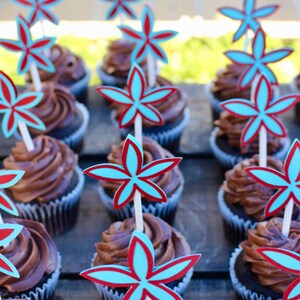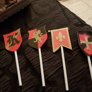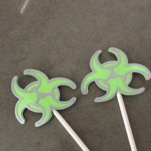 Our products are made out of premium quality cardstock. The toppers are multi layered allowing the cupcake stick to be concealed inside. Speaking of which, the cupcake sticks are rolled paper lollipop sticks. 100% food safe so you never have to worry about what you are sticking into you food.