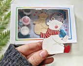 DIY Christmas Kit, Bear Ornament painting kit, Holiday Craft, wooden Christmas tree, wood painting, holiday party craft, long distance gift