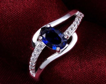 Blu sapphire and Diamond in 9 carat white gold