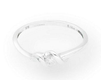 9carat White Gold 0.10ct Diamond Solitaire Ring (size N) 4mm Wide