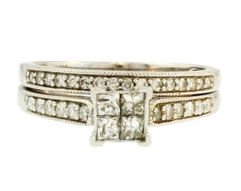 9carat White Gold Diamond(0.56tcw) Bridal Set Rings (size N 1/2)