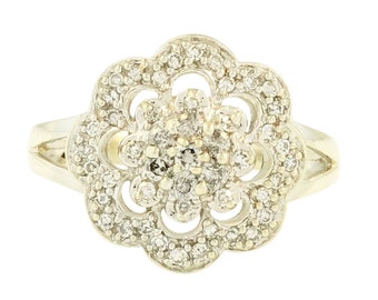 9carat White Gold 0.33ct Diamond 14mm Cluster Ring (size K)