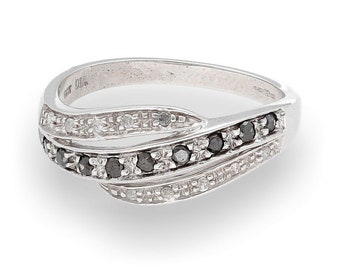 9carat White Gold 0.20ct Black and White Diamond Cluster Ring (size L 1/2)