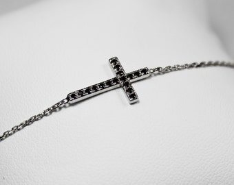 Bracelet and black 750 White Gold Diamond Cross