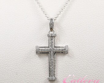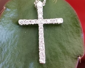 14k white gold diamond cross pendant