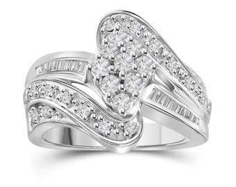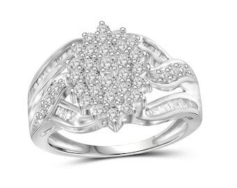 JewelonFire 1.00 Carat T.W. White Diamond Sterling Silver Cluster Swirl Ring