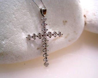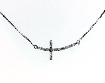 14K White Gold Diamond Cross Necklace