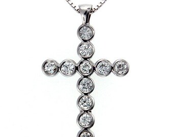 3.50 Carat Round/Princess/Baguette Diamond Cross 14K White Gold