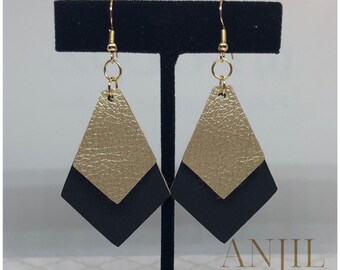 Black | Gold | Double | Diamond | Faux Leather | Handmade Earrings