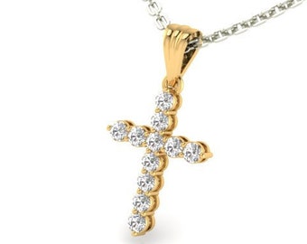 Diamond Cross Pendant, 1.00CT in 14K Yellow Gold