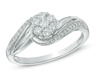 1/3 CT. T.W. Diamond Cluster Swirl Engagement Ring in 925 Sterling Silver Ring