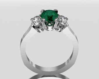14 Carat White Gold Three Stone Emerald Ring