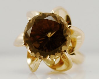 6 Carat Smoky Quartz Solitaire Swirl Engagement Ring Earth Tone Not Diamond