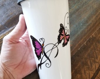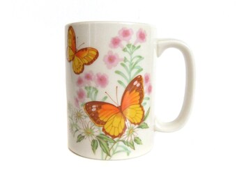Vintage Butterfly Coffee Mug Cup Set Lot Retro Stoneware Butterflies