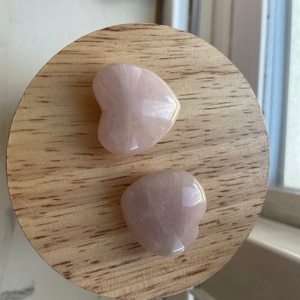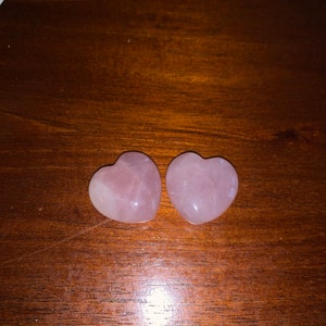 You get one Rose Quartz Heart similar to the ones pictured, approximately 1 inch + or _ a little. You can pick the set option for 1 set of 5 or one set of 10, please see the last picture for size in inches.
