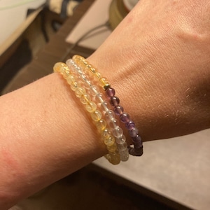 4mm Natural Citrine Bracelet, Healing Crystals Bracelet, Anxiety relief protection stretchy bracelet for women, Reiki Jewelry, Christmas Gift