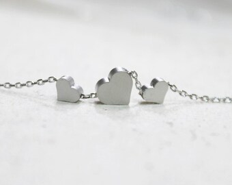 Cute Three silver Heart charms Necklace - S2315-1