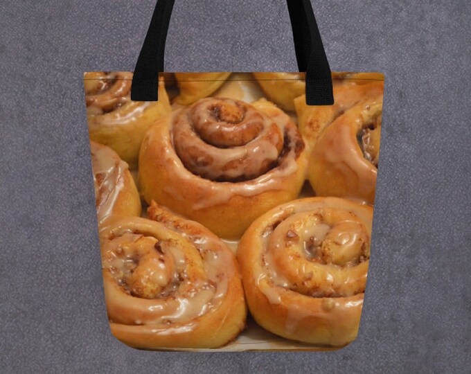 Cinnamon Roll Tote Bag, Food, Dessert, Shopping Bag, Shoulder Bag, Handbag, 15 x 15, Polyester, Printed, Gifts, Ladies, Women, Carry Bag