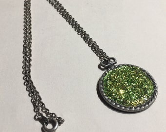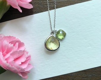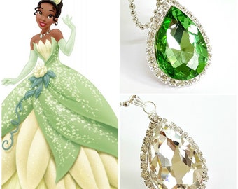 Princess & The Frog Crystal Charm Necklace, Princess Tiana Necklace, Princess Tiana Crystal Green Pendant, Green Teardrop Crystal Charm