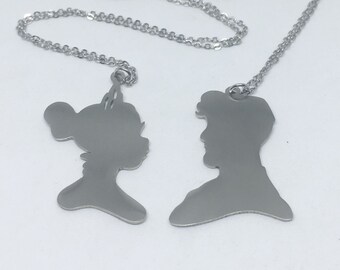 Disney Friendship Tiana and Naveen pendant in white bronze handmade by hand sawing, Disney couple,Disney Villains