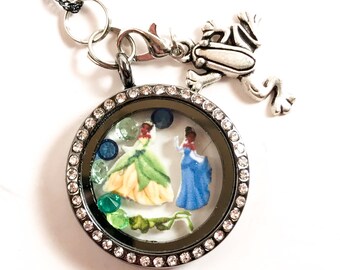 Disney princess collection- Tiana necklace princess and the frog necklace, floating locket- living locket- memory locket, Disney jewelry