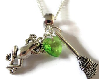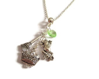 Tiana necklace, tiana party gift, princess necklace, frog necklace, broomstic necklace, tiana jewellery, party favors gift, 365party