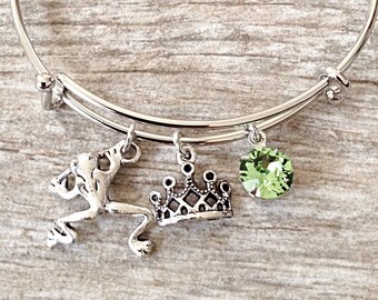 Tiana Princess and the Frog Disney Inspired Bangle Charm Bracelet With Swarovski Crystal