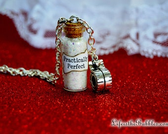 Mary Poppins Necklace, Practically Perfect Magical Bottle Necklace with a Tape Measure Charm Disney, Mary Poppins Cosplay, Disney Bound