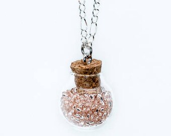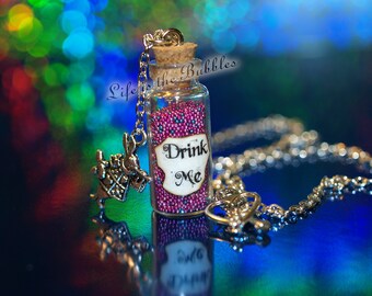 Alice in Wonderland, Drink Me Bottle Necklace in Psychedelic Pink with a Rabbit Charm, Disney Bound, Alice Cosplay, by Life is the Bubbles