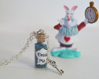 Drink Me Necklace, Alice in Wonderland, Bottle Necklace with a Key Charm, Through the Looking Glass, Disney Bound, Disney Cosplay