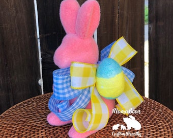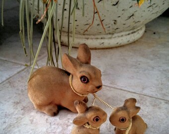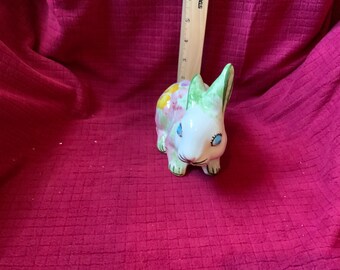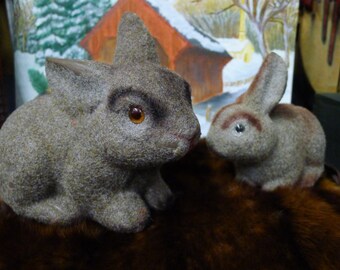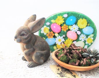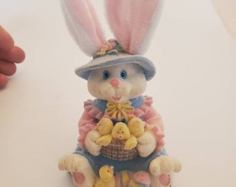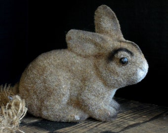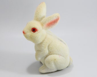Vintage Fuzzy Rabbit Bank Flocked Bunny Easter Toy