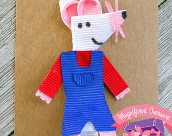 This is an absolutely adorable Angelina Ballerina inspired ribbon sculpture hair clip. She's Perfect for any little girl. These clips are great attached to your little girl's hair, T-shirts, outfits, costumes, or backpacks. They also make a great party favor.