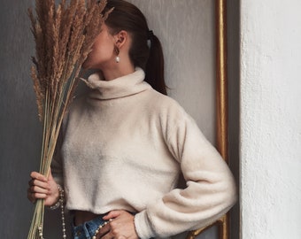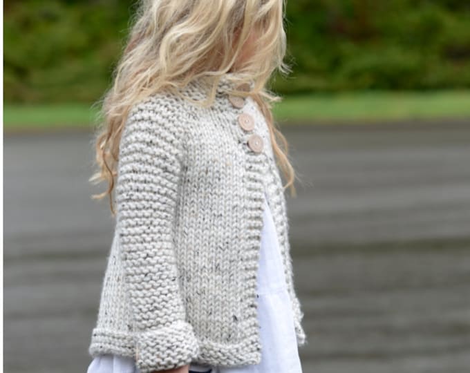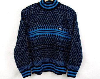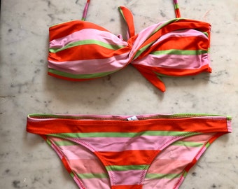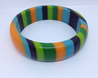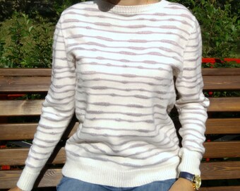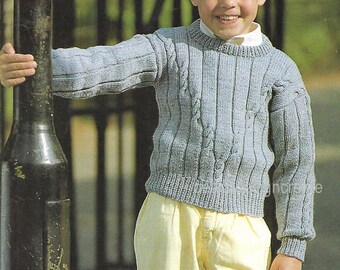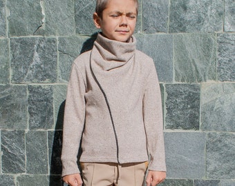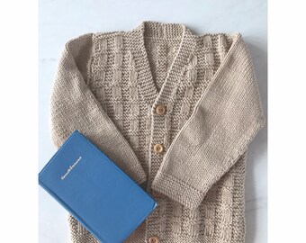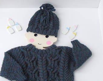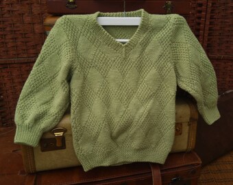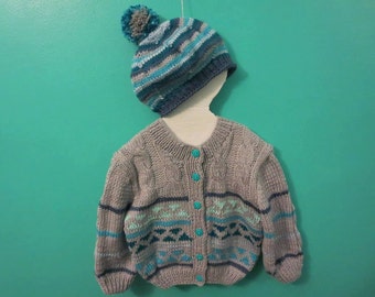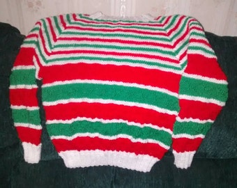 Knitted boy's sweater, striped in orange and turquoise, READY TO SHIP 5-7y