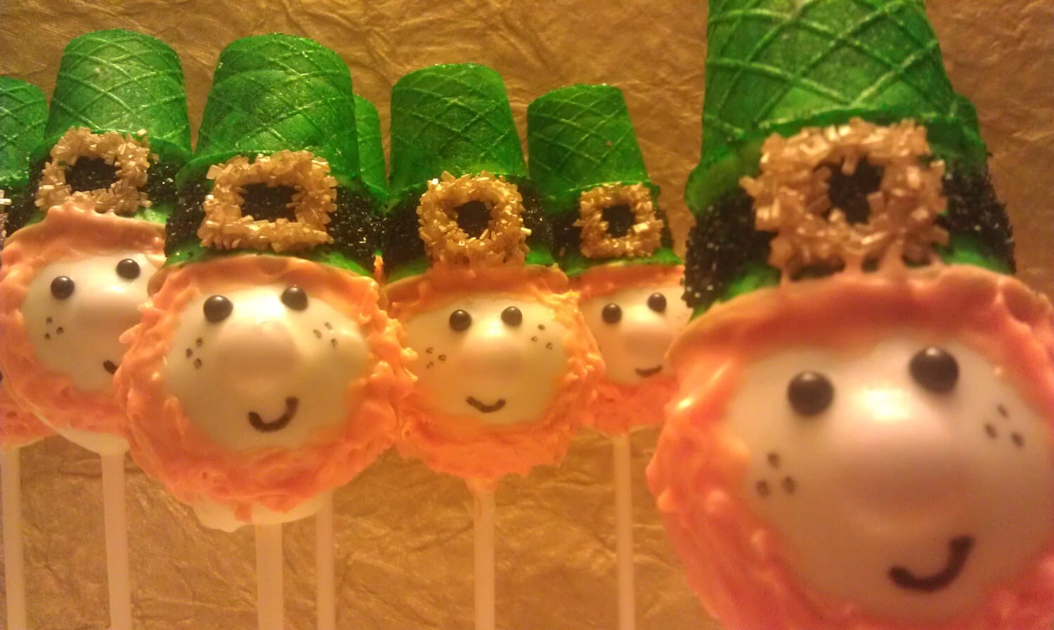 These sprites are ready to leap into action on St. Pat's Day. Made to order with your choice of cake flavor (Chocolate, Vanilla, Orange Cream, or Red Velvet...Mt. Dew). Each hand shaped and dipped in White Chocolate. The Top o'the Mornin' Leprechauns are sold by "bakers" dozen (13) though individual orders can be arranged. Each are wrapped in their own cello package with twist tie and shipped box within box.