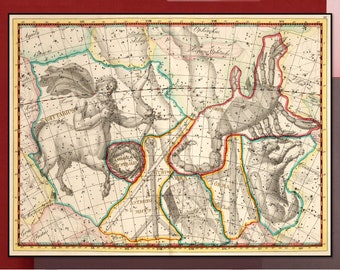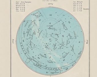 Vintage Astronomy Star Constellation Map 1 and 2 - 1946 Textbook Page