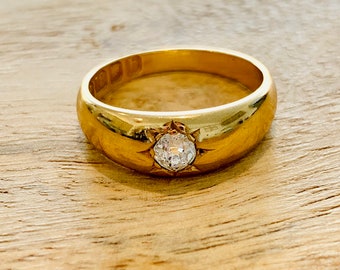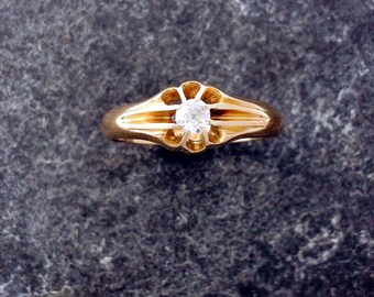 Victorian Diamond Solitaire 18K Gold Ring- London 1897