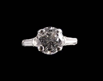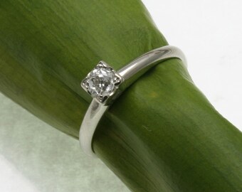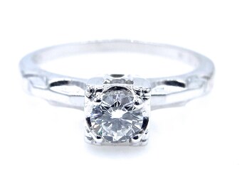 Vintage Wedding Ring - 14k White Gold Solitaire Round Diamond Ring - Size 6 - Color H I - Engagement - Wedding Ring - Promise # 1910