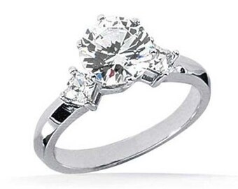 1.35 ct Round Diamond Wedding Ring w/ 2 princess cut 14K White Gold, E SI2