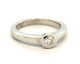 Vintage 14k white gold diamond miners cut solitaire 0.28 carats Estate engagement ring