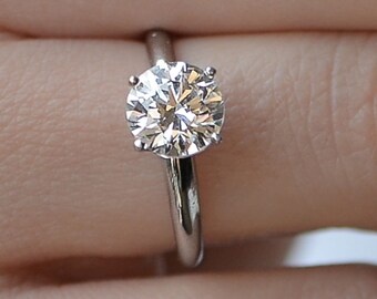 Solitaire Round Diamond Engagement Ring, 18K White Gold Ring, 1 CT D/VS2 Bridal Ring