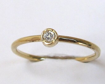 Yellow gold diamond ring, 14k solid gold ring, engagement ring, promise ring, dainty solitaire round diamond, anniversary ring