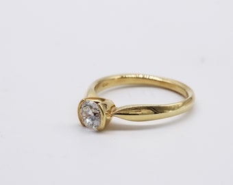 Estate Diamond Engagement Ring, Solitaire Round Brilliant Diamond in 18k Yellow Gold Half Bezel, VS Quality Diamond
