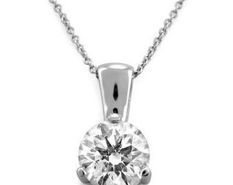 1.25 carats solitaire round diamond necklace pendant white gold 14K