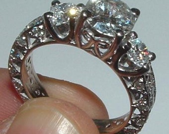 Diamond women engagement ring white gold antique solitaire 3.2 carat