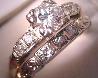 Antique Diamond Wedding Ring Set Vintage Art Deco Band