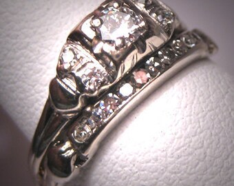 Antique Diamond Wedding Ring Set Vintage Art Deco White Gold